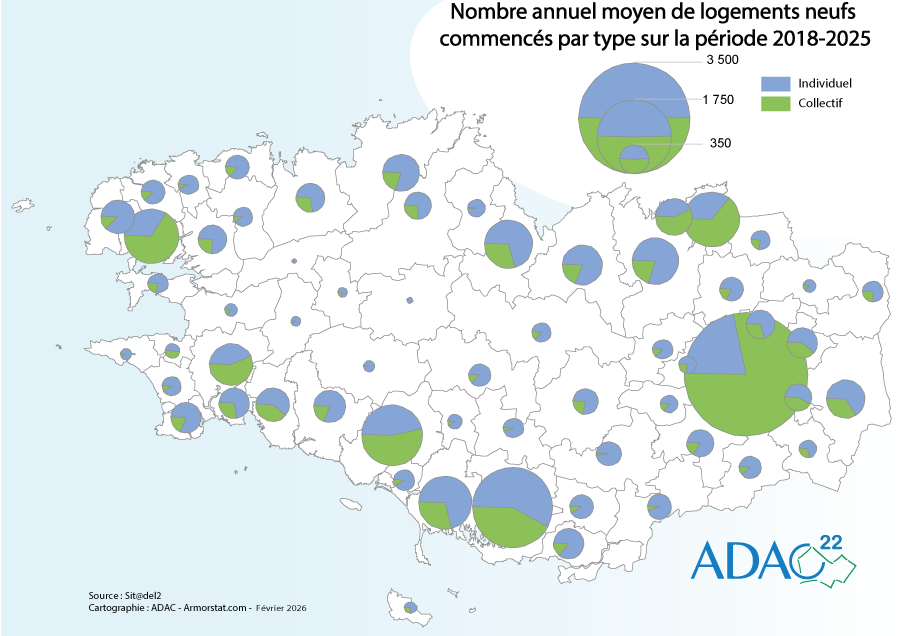 Nombre annuel moyen de logements neufs commencés par type 2018-2025 |