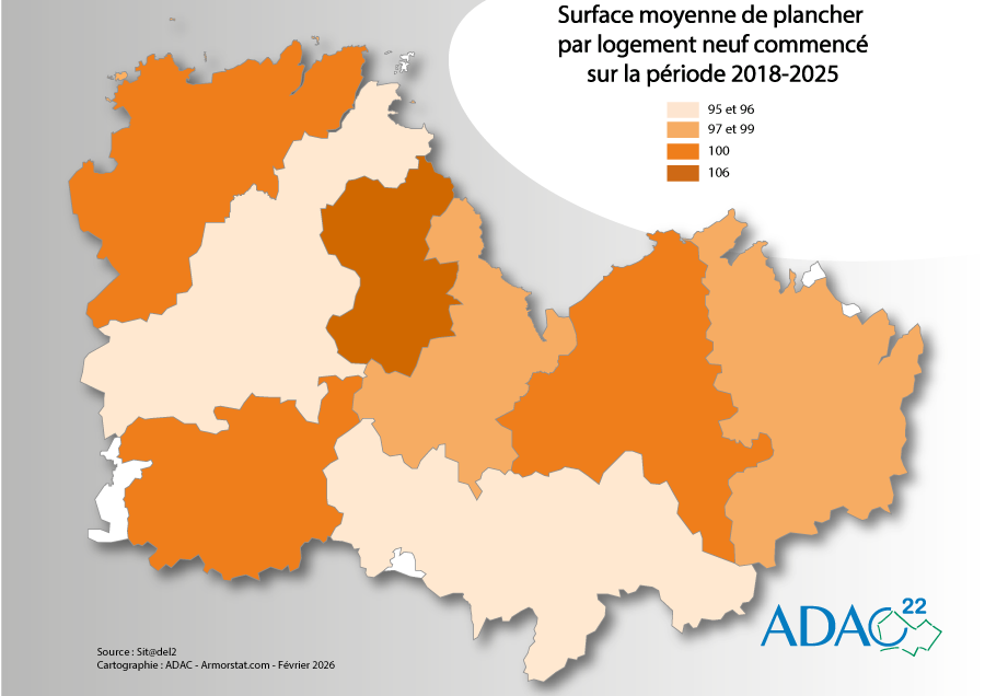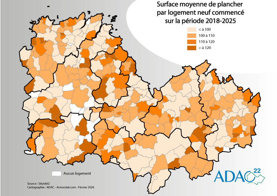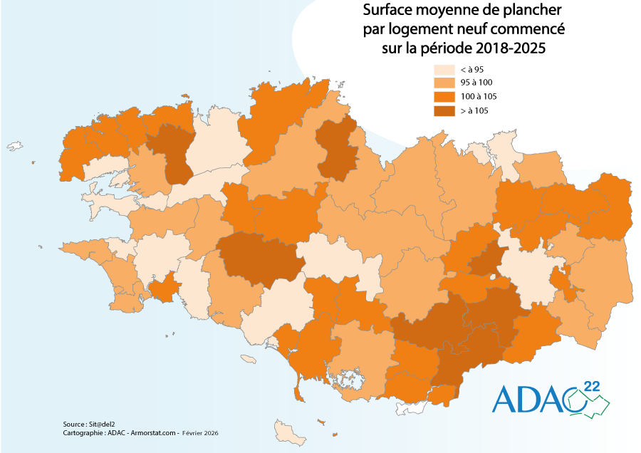 Surface moyenne de plancher par logement neuf commencé 2018-2025 |
