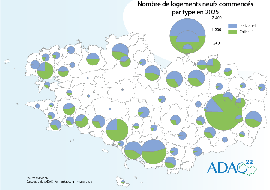 Nombre de logements neufs commencés par type 2025 |