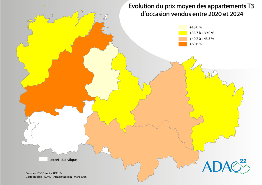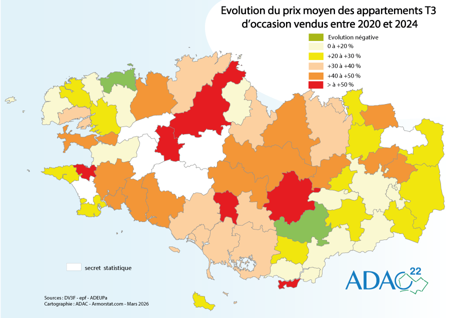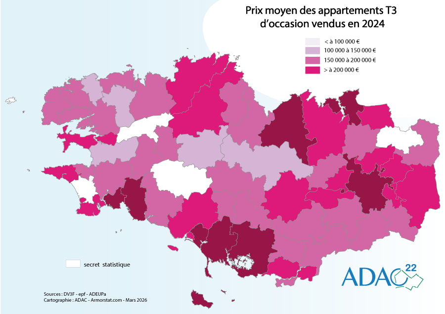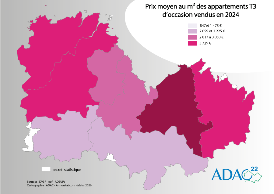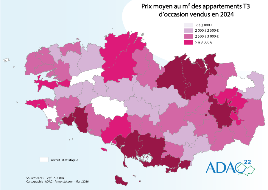 Prix moyen au m² des appartements T3 d'occasion vendus 2024