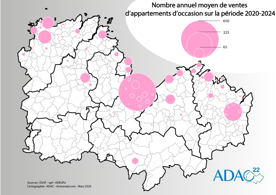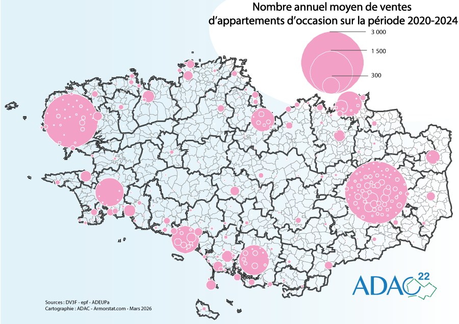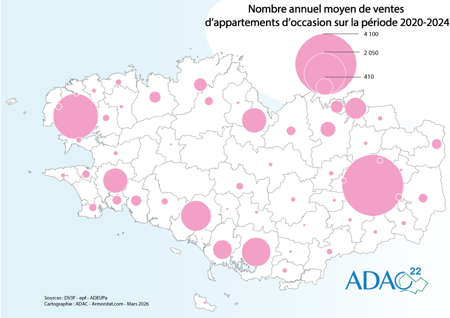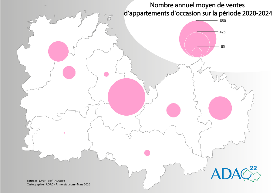 Nombre annuel moyen de ventes d'appartements d'occasion 2020-2024