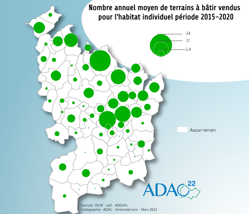 Nombre annuel moyen de terrains à bâtir vendus pour l'habitat individuel 2015-2020 |