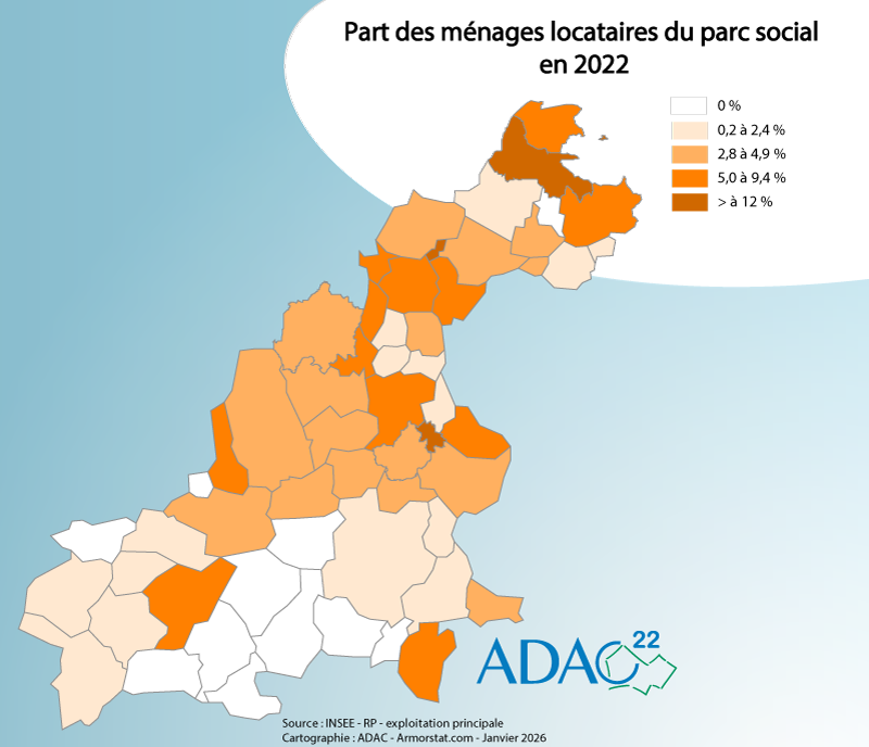 Part ménages locataires du parc social 2022 (%) |