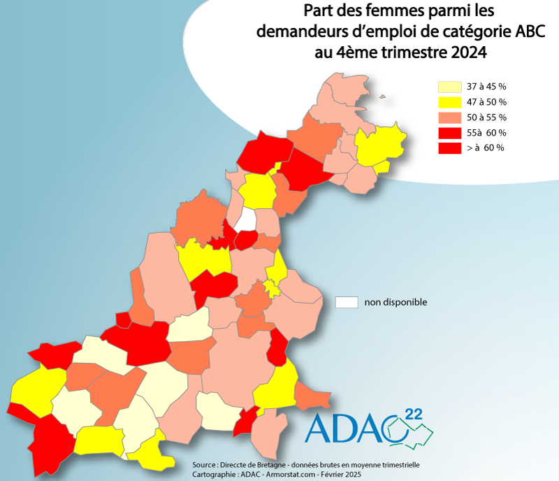 Part des demandeurs d'emploi femmes communes Guingamp-Paimpol Agglomération |