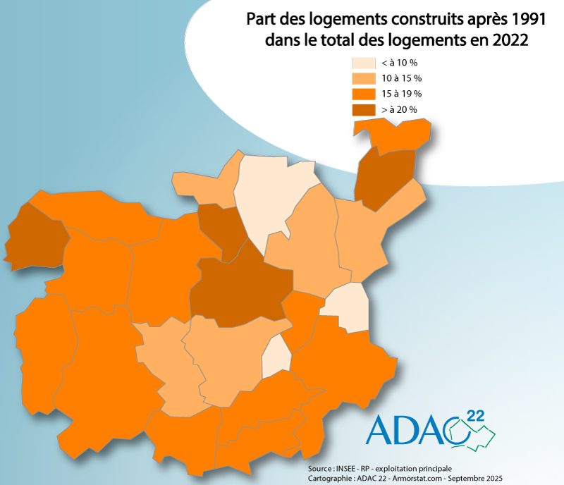 Part des logements construits après 1991 dans le total des logements 2022 |