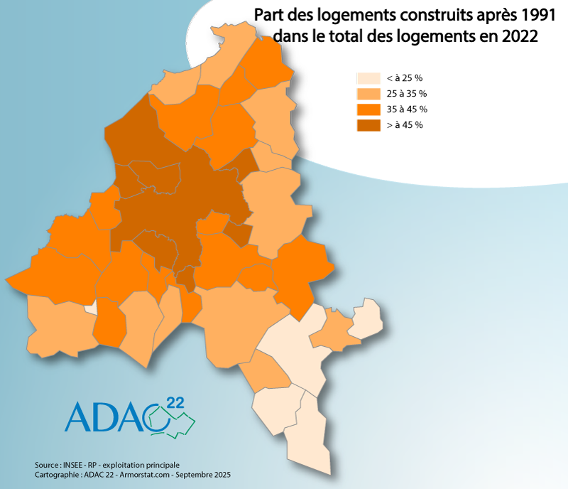 Part des logements construits après 1991 dans le total des logements 2022 |