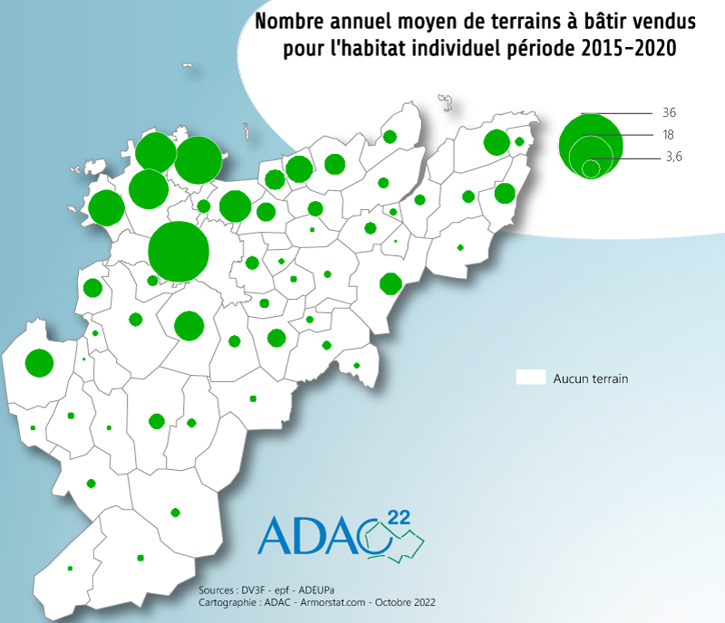 Nombre annuel moyen de terrains à bâtir vendus pour l'habitat individuel 2015-2020 |