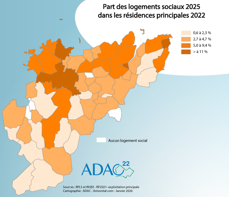 Part des logements sociaux 2025 dans le total des résidences principales 2022 |