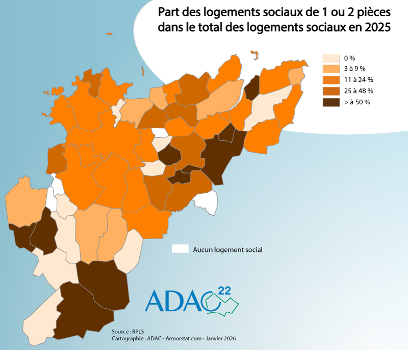 Part des logements sociaux 1 & 2 pièces dans le total des logements sociaux 2025 |