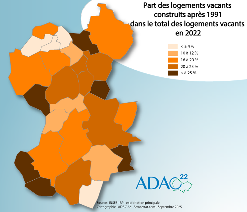 Part des logements vacants construits après 1991 dans le total des logements vacants |