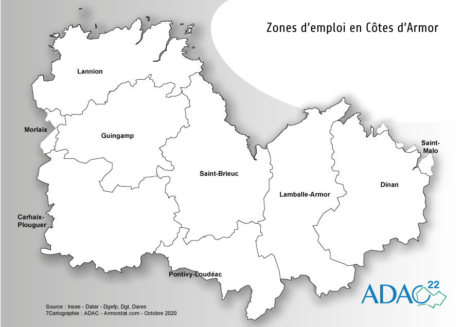 > Côtes d'Armor Zones d'emploi 2020 (avec noms) - Format JPG Lien