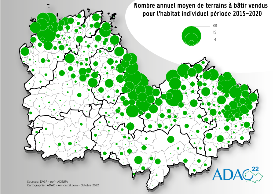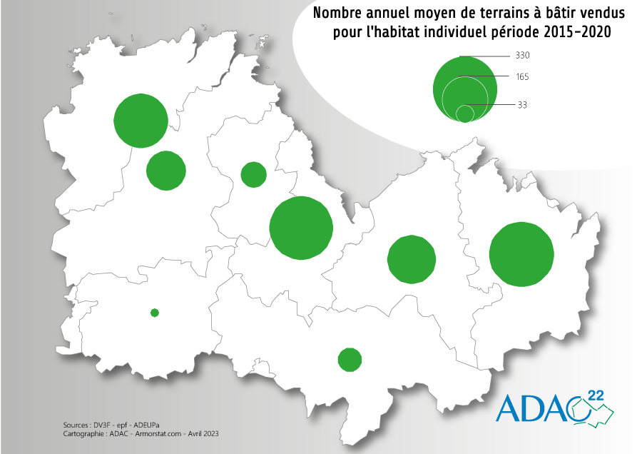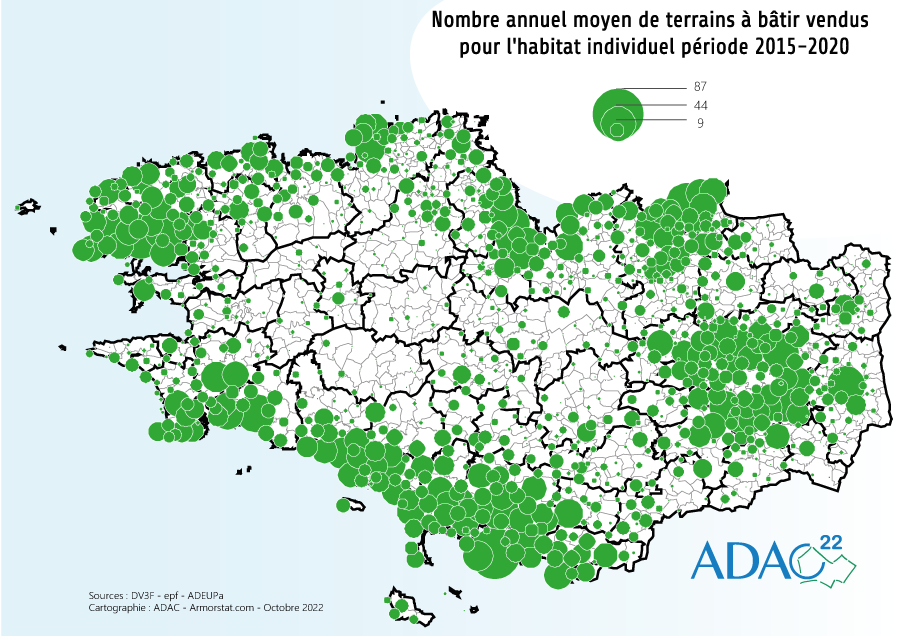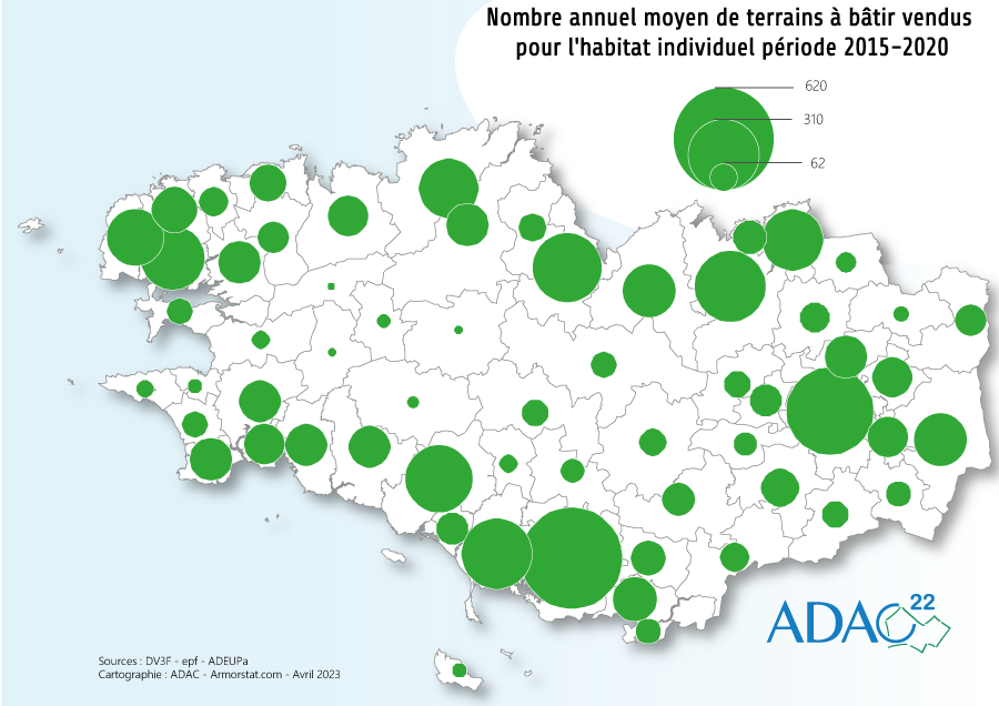 Nombre annuel moyen de terrains à bâtir vendus pour l'habitat individuel 2015-2020 |
