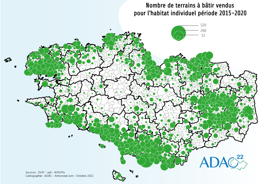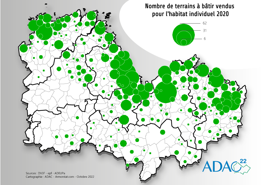 Nombre de terrains à bâtir vendus pour l'habitat individuel 2020 |