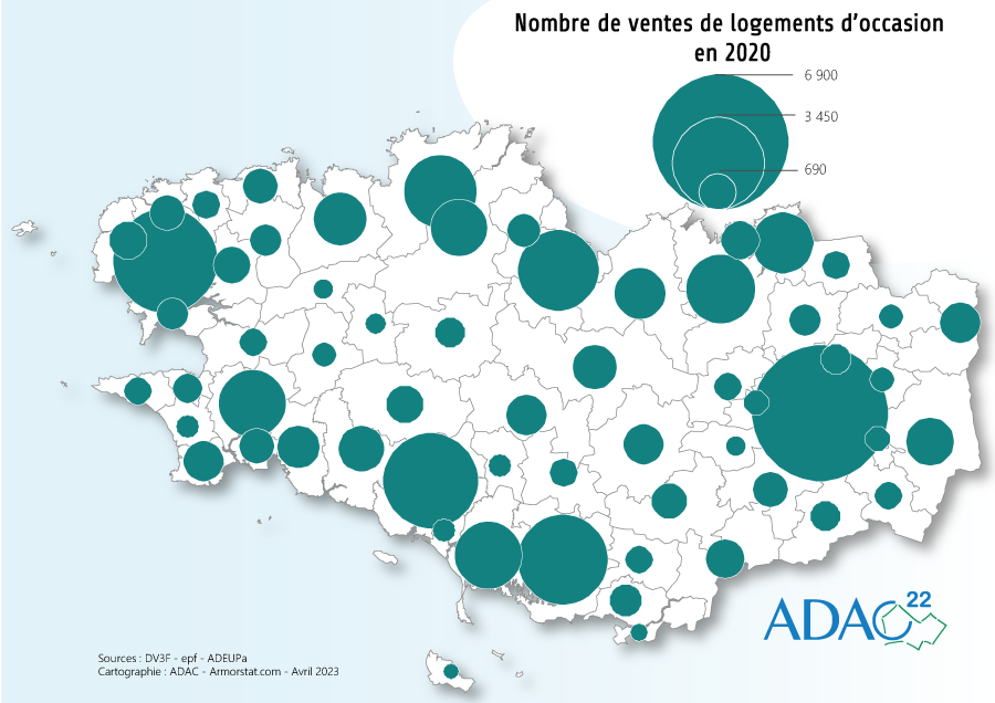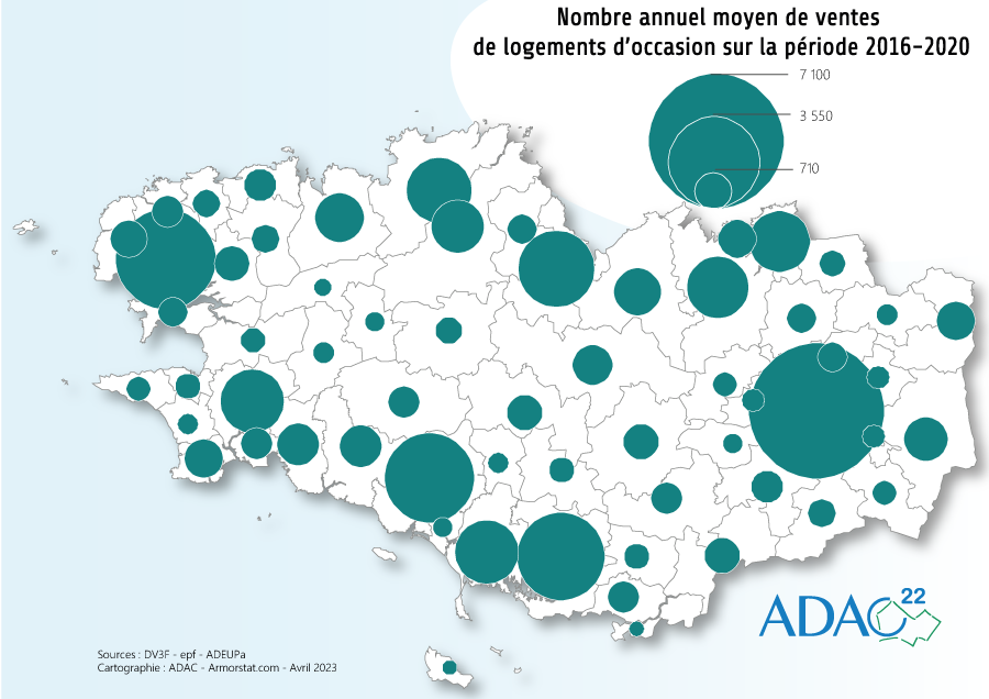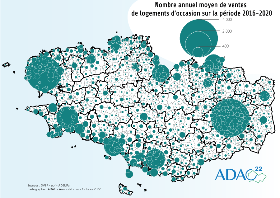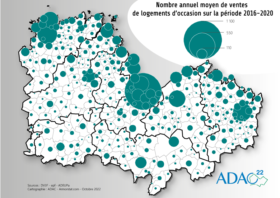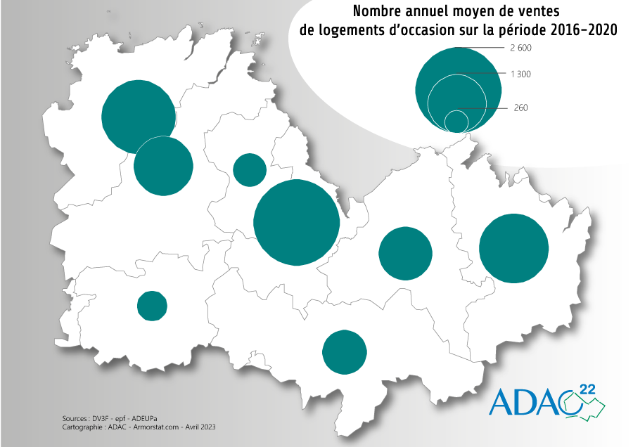 Nombre annuel moyen de ventes de logements d'occasion 2016-2020