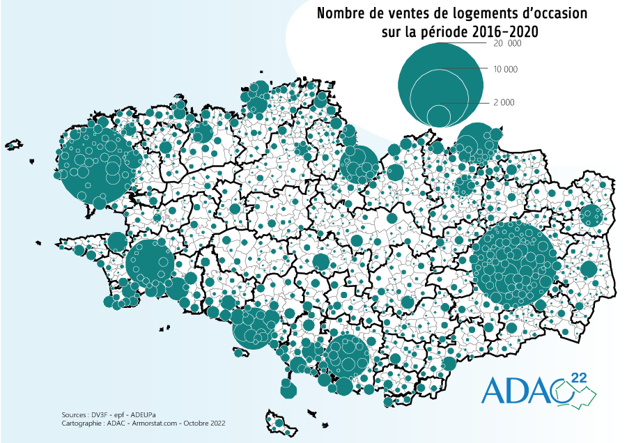 Nombre de ventes de logements d'occasion 2016-2020 |
