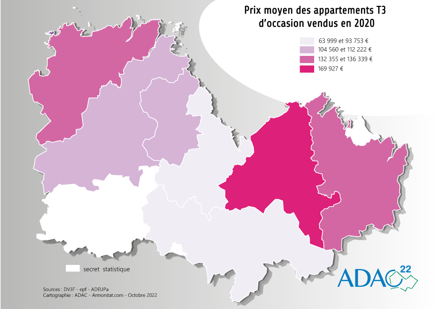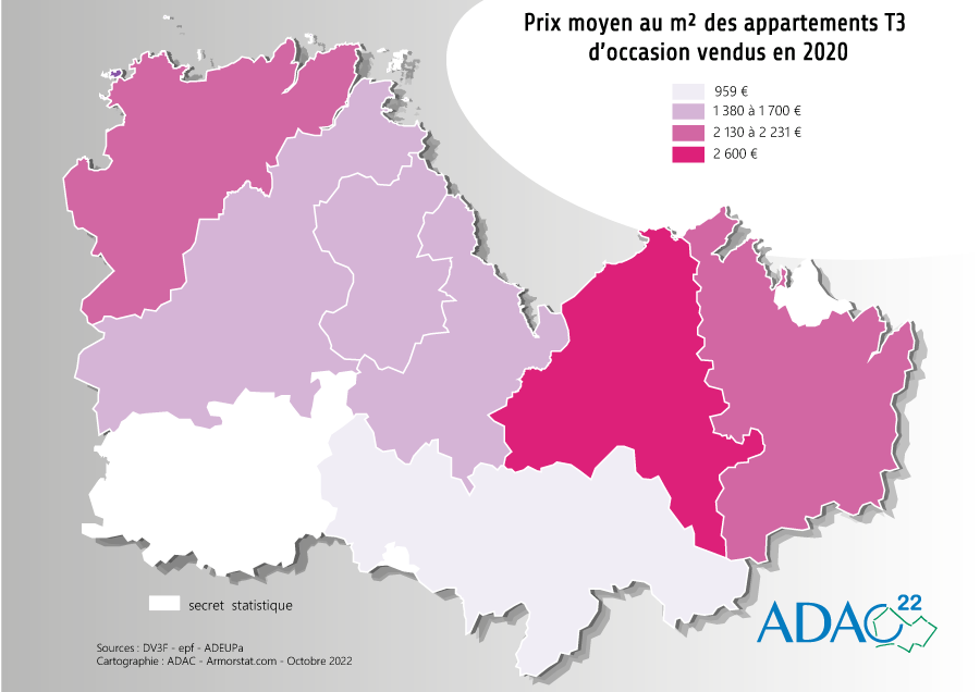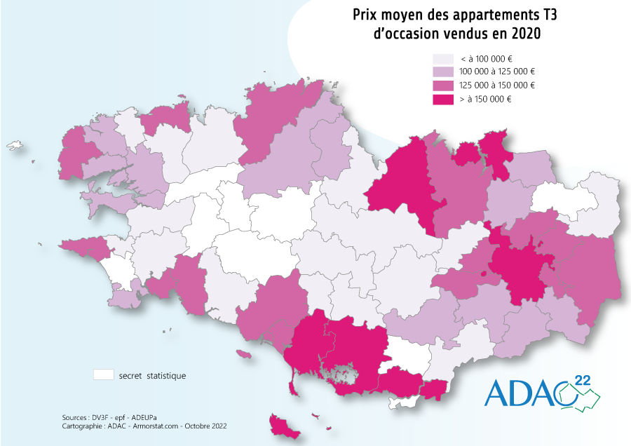 Prix moyen au m² des appartements T3 d'occasion vendus 2020
