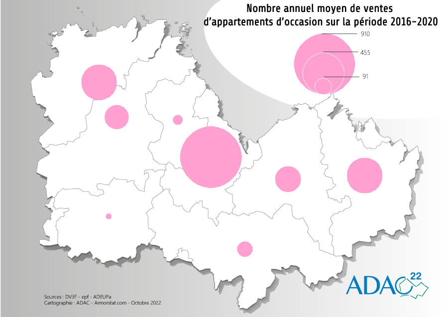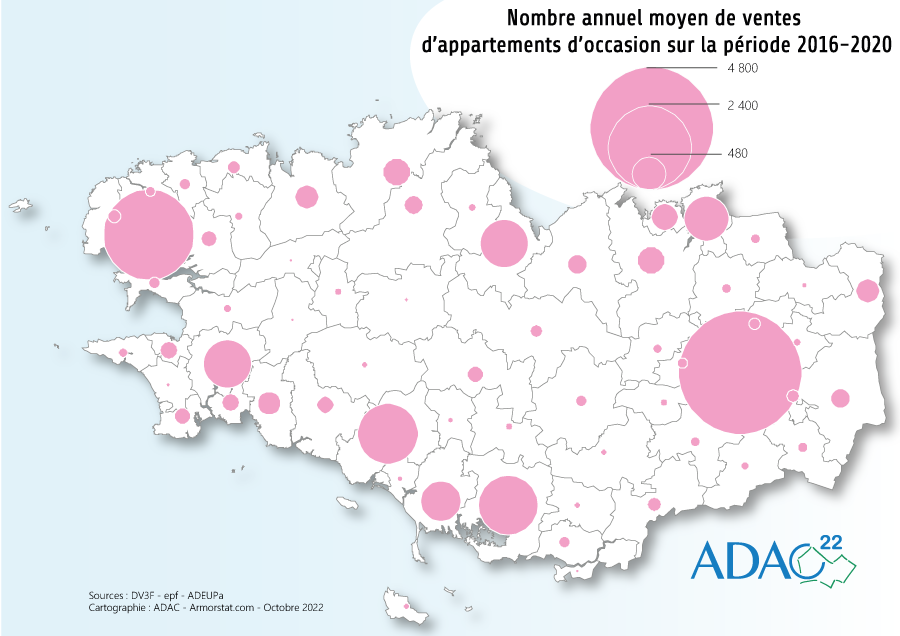 Nombre annuel moyen de ventes d'appartements d'occasion 2016-2020